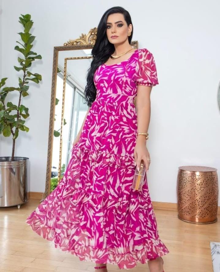 Modelo com lastex nas costas, deixando o vestido mais acinturado, manguinha com lastex para ajustar a altura. Super versátil, vai bem com salto para você ficar linda e elegante, tênis para ir passear ou rasteirinha para ir a praia, caimento incrível.            Perfeito para compor looks delicados e cheios de charme!